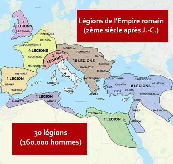 La légion est l'unité de base de l'armée romaine de la Rome antique jusqu'à la fin de l'Empire romain. Durant douze siècles (de 753 avant notre ère à 476 de notre ère), les effectifs et la composition des légions romaines ont beaucoup varié. A l’origine, les légionnaires avaient pour mission de défendre la ville de Rome puis au fil des siècles, ils sont devenus d’implacables soldats de métier au service de la conquête du monde méditerranéen. A l’apogée de l’Empire romain, les 30 légions comptent environ 160.000 hommes et représentent l’essentiel du budget de l’État. Puis, après la phase de conquêtes et d’expansion, les légions se contenteront de défendre les frontières (limes). Enfin, avec le déclin du pouvoir impérial, elles s’affaibliront au point de ne plus être en mesure de contenir les hordes barbares qui envahissent l’Empire et entrainent sa chute finale au Ve siècle.