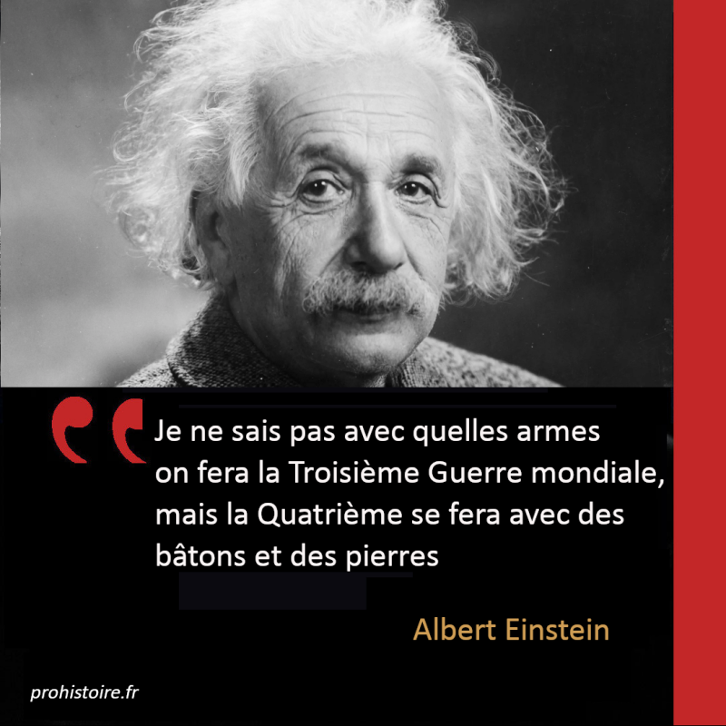 Albert Einstein, avec le recul du savant sur la folie des hommes, lançait cet avertissement glaçant : « Je ne sais pas avec quelles armes on fera la Troisième Guerre mondiale, mais la Quatrième se fera avec des bâtons et des pierres. » Derrière cette formule, il y a toute l’intuition tragique de ce que serait un conflit total à l’ère nucléaire : l’effacement de la civilisation, le retour à la préhistoire.