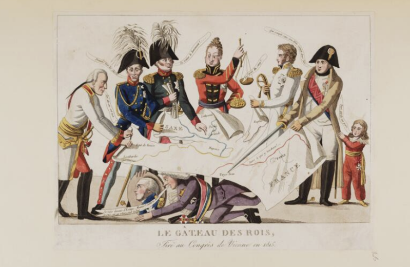 Caricature : « Le gâteau des rois, tiré au Congrès de Vienne en 1815 » (Bodleian Library)
