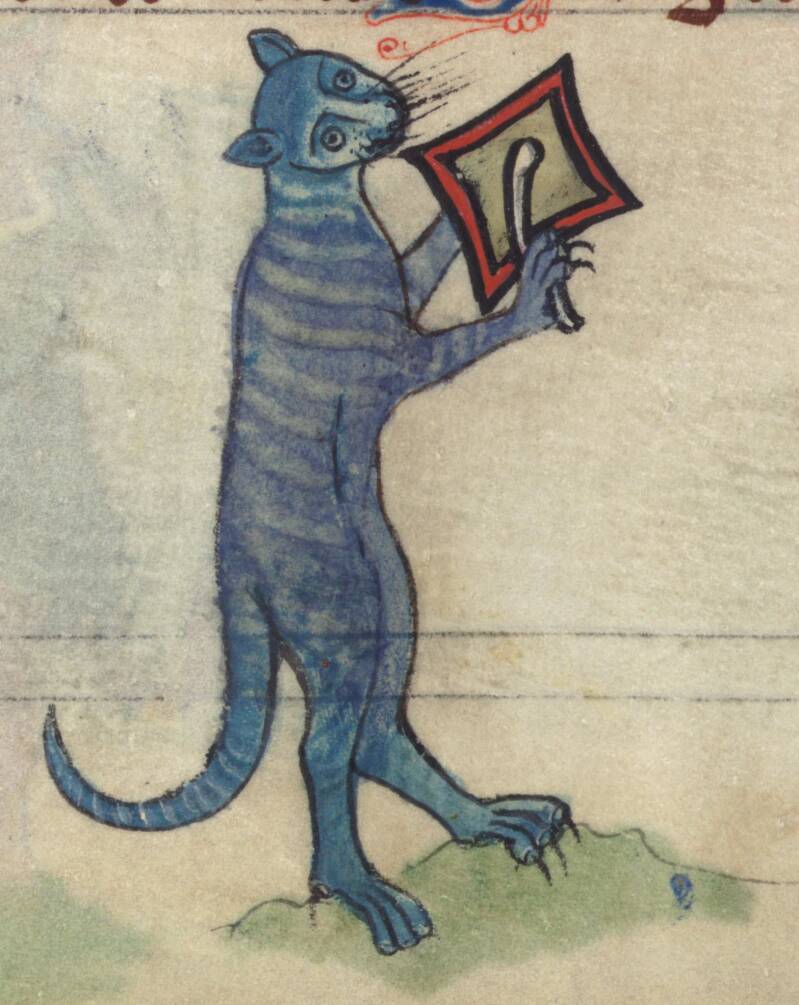 "Chat frappant une cymbale" tiré d'un manuscript du 13ème siècle
