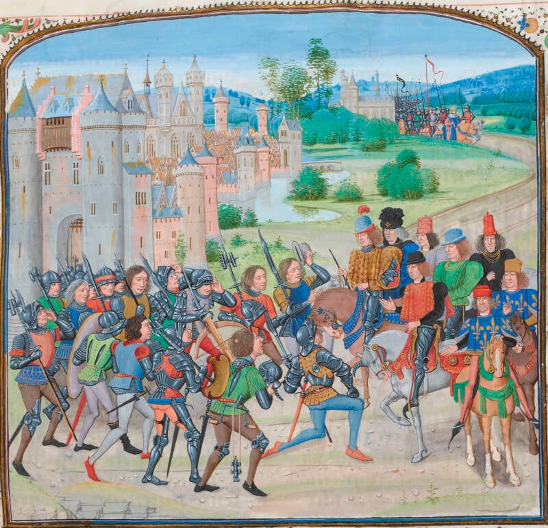 Révolte des maillets ou maillotins, enluminure d'une chronique française anonyme, Bibliothèque municipale de Besançon, XVe siècle