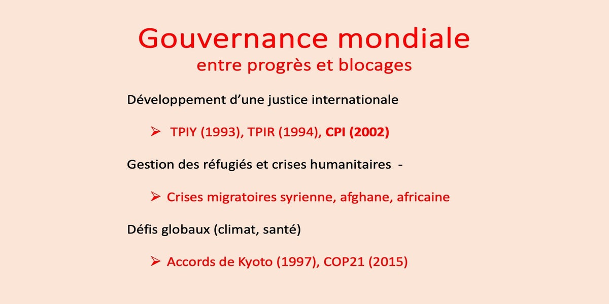 Gouvernance mondiale : entre progrès et blocages Développement d’une justice internationale