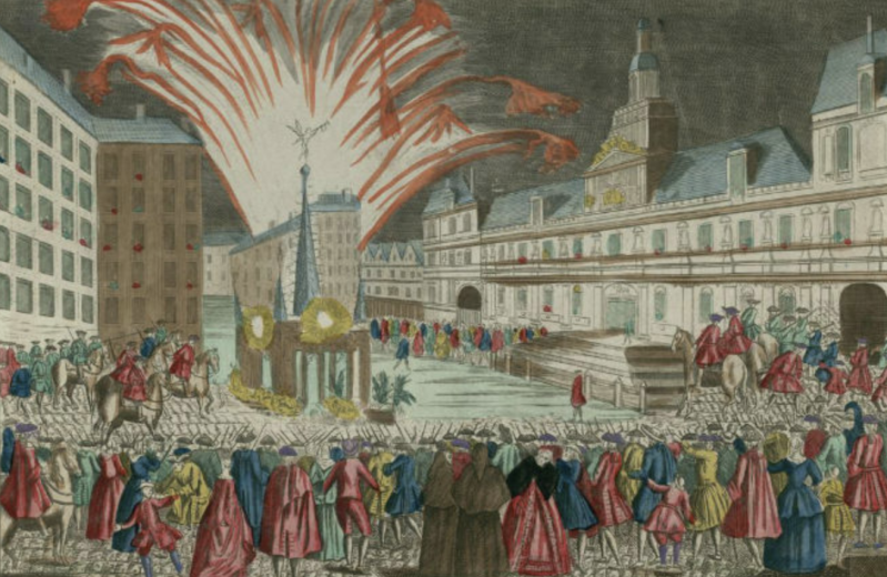 feu d'artifice tiré devant l'Hôtel de Ville à l'occasion de la signature du traité de Paris (gallica.BnF.fr)